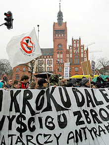 Przez jeden dzień Słupsk stał się centrum uwagi większości stacji telewizyjnych na świecie. Ulicami miasta przeszło kilkaset osób w proteście przeciwko budowie w Redzikowie elementów tarczy antyrakietowej USA. Wśród nich poza słupszczanami byli też m.in. mieszkańcy Warszawy, Poznania i Trójmiasta, a nawet z tak odległych krajów jak Irlandia, Australia i Czechy. Demonstranci zgromadzili się na placu Zwycięstwa, by stamtąd barwnym korowodem wyruszyć w kierunku dworca PKP i ponownie ulicami miasta dotrzeć na miejsce potencjalnej budowy systemu. (mas)