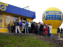 W sobotę, 12 listopada br. mieszkańcy Słupska tłumnie uczestniczyli w otwarciu nowego sklepu Vabbi Factory Outlet. Uroczystego otwarcia 24-go Vabbi dokonali Piotr Adamski, znany jako "polski hydraulik", Maciej Kobyliński, Prezydent Miasta Słupska oraz prezes firmy Semax S.A. - Mariusz Szeib. Atrakcją wydarzenia była obecność Piotra Adamskiego, "polskiego hydraulika", który jest twarzą Vabbi FO. Klienci mogli zrobić sobie z nim pamiątkowe zdjęcie oraz otrzymać plakat z autografem. Symbolicznego przecięcia wstęgi, otwierającego sklep, dokonał prezes Szeib oraz prezydent Słupska Maciej Kobyliński. Tego dnia pogoda nie sprzyjała spacerom, ale w nowym sklepie zjawiły się tłumy. Kolejka przed wejściem ustawiała się już na godzinę przed planowanym otwarciem. "Z reguły rzeczywiście są setki ludzi i widzę, że tutaj też jest gęsto" – skomentował sytuację prezes Szeib.