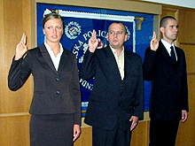 W siedzibie Komendy Miejskiej Policji w Słupsku przy al. 3-go Maja odbyło się uroczyste ślubowanie nowych policjantów, którzy wstąpili w szeregi słupskiej policji. Ślubowanie przyjął Zastępca Komendanta Miejskiego Policji w Słupsku nadkom. Andrzej Szaniawski. Funkcjonariusze po złożeniu ślubowania odebrali akty nominacyjne na pierwszy stopień.