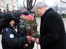 W pożegnaniu policjantów uczestniczyli także komendant główny Policji Marek Bieńkowski oraz przewodnicząca Rady Miejskiej Słupska Anna Bogucka-Skowrońska.