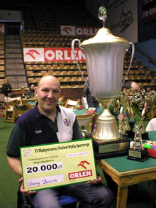 W słupskiej hali "Gryfia", w niedzielę 14 sierpnia zakończył się Jubileuszowy XV Międzynarodowy Festiwal Brydża Sportowego "Solidarność". W klasyfikacji generalnej najlepszy okazał się zawodowy brydżysta, wielokrotny mistrz świata i europy Cezary Balicki z drużyny Computerland AZS Politechniki Wrocław. - Nie spodziewałem się wygranej, bo nie przyjechałem tutaj po zwycięstwo. Jest to trochę niespodziewana nagroda, ale tym przyjemniejsza - podkreśla zwycięzca. Drugie miejsce zajął Włodzimierz Starkowski, zostawiając w tyle Tadeusza Kaczanowskiego, który zajął dopiero trzecie miejsce. W tym roku ogólna pula nagród wynosiła 150 tys. zł, a na nagrodę główną organizatorzy przeznaczyli 20 tys. zł. Trzy najlepiej grające kobiety otrzymały łącznie 6 tys. zł, natomiast trzech najlepszych zawodników otrzymało 4,5 tys. zł. Tyle samo otrzymali zwycięzcy w punktacji generalnej turniejów otwartych. (jas)