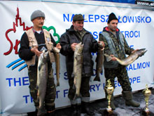 Festynem na rzece Słupi rozpoczęło nowy rok ponad 200 wędkarzy z całej Polski. W ciągu 6 godzin zawodnicy złowili ponad sto łososi i troci, z czego do konkursu zgłoszono tylko 5 sztuk łososi i 26 sztuk troci o łącznej wadze 70kg. Puchar „Za największą rybę” otrzymał Wojciech Łakomiak z Koła PZW Zagórów, który złowił 4,965 kg łososia. W klasyfikacji ogólnej zwyciężył Kłudka Czesław, drugie miejsce zajął Łakomiak Wojciech, a trzecie Rajkowski Dariusz. Najmłodszym uczestnikiem Zawodów był 12-letni Rodewald Łukasz, a najstarszym 77-letni Machłajewski Anatol. Wszyscy zwycięzcy otrzymali puchary i upominki, które wręczał Prezes ZO PZW Słupsk Teodor Rudnik, Starosta Powiatu Słupskiego Zdzisław Kołodziejski i Prezydent Miasta Maciej Kobyliński. (jas)