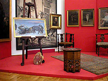 Na wystawie prezentowane są dzieła malarstwa polskich artystów związanych ze środowiskiem monachijskim, którzy mimo działalności poza granicami Polski, sięgali w swojej twórczości po tematy historyczne o charakterze narodowym, zarówno z czasów odległych, jak i im współczesnych. Zwracali się również do tradycji szlacheckich, ziemiańskich, które widoczne są w scenach z polowań, kuligów, czy targów końskich. Tematyka rodzajowa łączyła się z pejzażem. Na tle polskich krajobrazów przedstawiano sceny powstańcze, polowania, a także z życia na wsi.