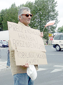 Uroczystość próbowało zakłócić dwóch mężczyzn z transparentem „Precz z komuną, hańba prezydent z PZPR Kobyliński składa kwiaty”. Po krótkiej szarpaninie - do której doszło po tym, jak zastępca prezydenta miasta Andrzej Kaczmarczyk zabrał manifestującym karton z napisem - funkcjonariusze Straży Miejskiej i Policji zatrzymali demonstrujących. (jas)