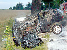 Na trasie Sierakowo - Łosino doszło do tragicznego wypadku drogowego. Kierujący samochodem VW Golf III 22-latek z nieustalonych przyczyn zjechał na lewe pobocze i uderzył w przydrożne drzewo. Pojazd stanął w płomieniach. Kierowca i 17-latni pasażer ponieśli śmierć na miejscu. Drugi pasażer - 18-latek doznał obrażeń ciała. Został przewieziony do szpitala. Decyzją prokuratora zwłoki kierowcy i 17-latka zabezpieczono do badan sekcyjnych. Policja wyjaśnia wszystkie okoliczności i przyczyny wypadku. (jas)