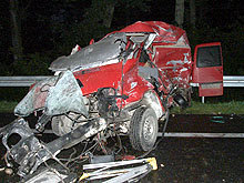 Pasażer 47-letni mieszkaniec Gdyni doznał ogólnych potłuczeń i otarć naskórka. Po badaniach lekarskich został zwolniony. Kierowca VW T4 doznał zwichnięcia biodra, natomiast pasażer 42-letni mieszkaniec Bobrowic doznał urazu kręgosłupa. Pozostałym uczestnikom wypadku tj. kierowcy Fiata oraz kierowcy i pasażerowi Mercedesa osobowego nic się nie stało. Zwłoki ofiary wypadku zabezpieczono do badań sekcyjnych. Według wstępnych ustaleń przyczyną wypadku było niezachowanie należytej ostrożności przez kierującego VW T4. Obecnie Policja wyjaśnia okoliczności i przyczyny wypadku. (jas) |